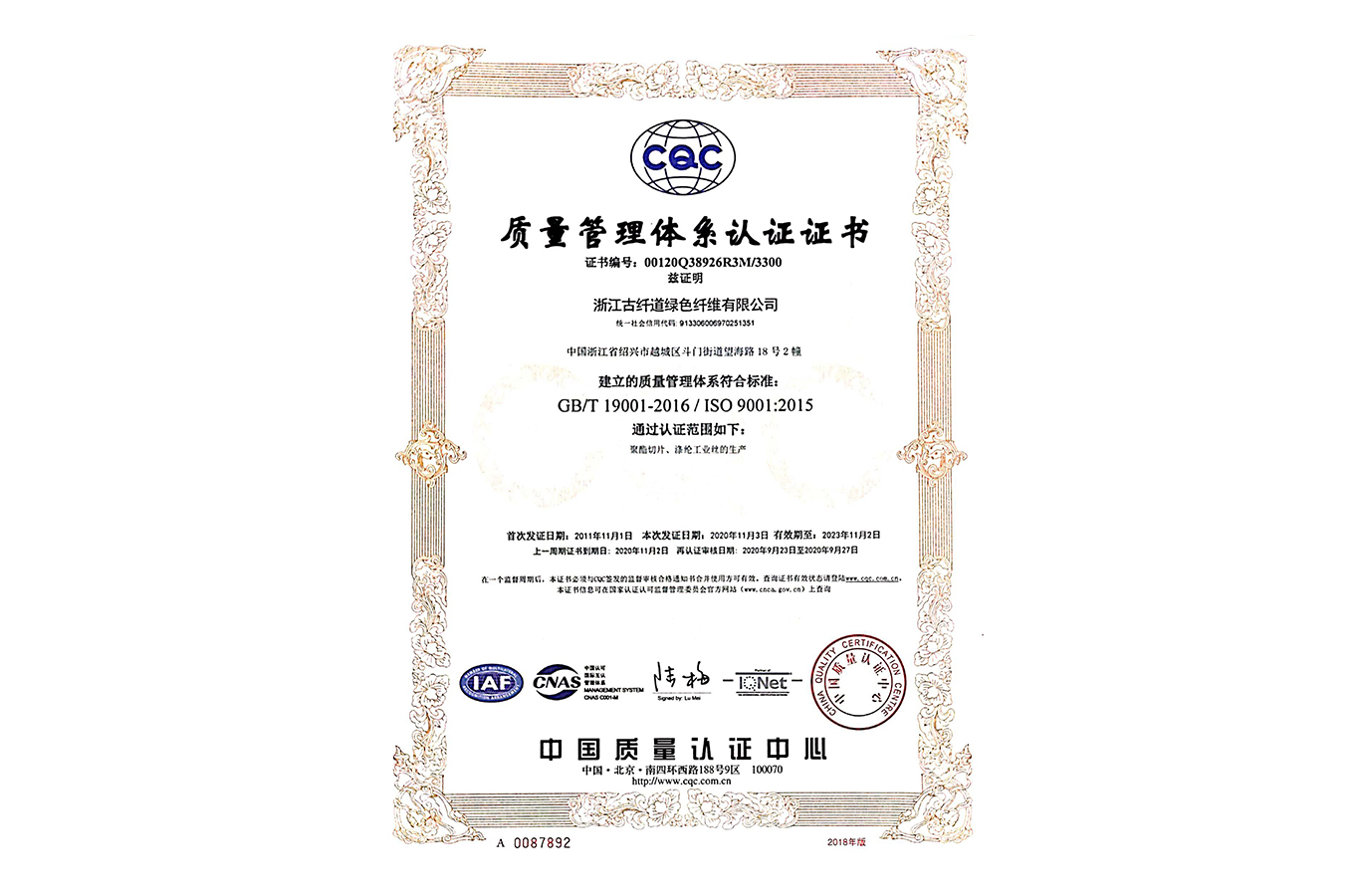 COPYRIGHT ? 2019 浙江古纖道綠色纖維有限公司 ALL RIGHTS RESERVED. 浙ICP備13000143號
